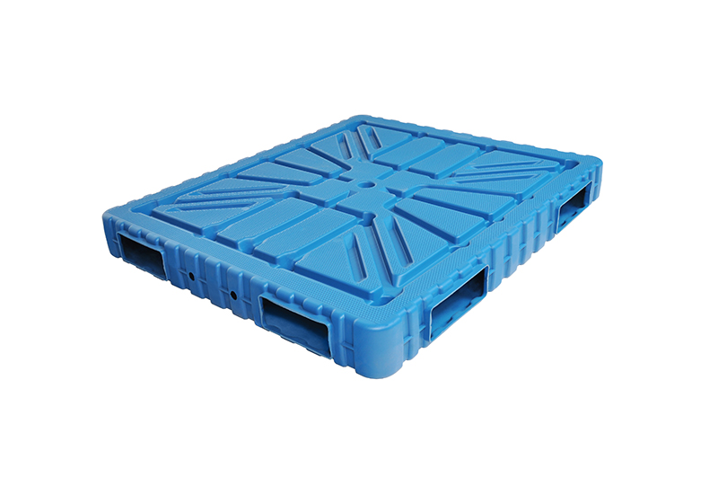 雙層塑料托盤由自帶鎖扣的頂蓋和底托以及能折疊的圍板構成一套完好的組合式塑料托盤,頂蓋和底托運用HDPE制成。選用雙層一次性吹塑技能成型。基地圍板可選用PP(聚丙烯樹脂)塑料中空板或七層瓦楞紙板做成可折疊的圍板。